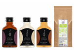 Sada snů obsahující 3 x 1 kg zrnkové kávy: Brazílie, Etiopie, Honduras a 3 x 100 ml sirupů pomeranč, vanilka a mandle